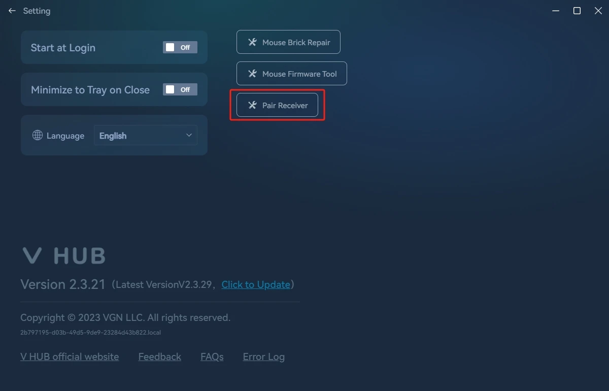 (2) Turn on the V HUB, follow the instructionsin V HUB, turn on the receiver pairing function.